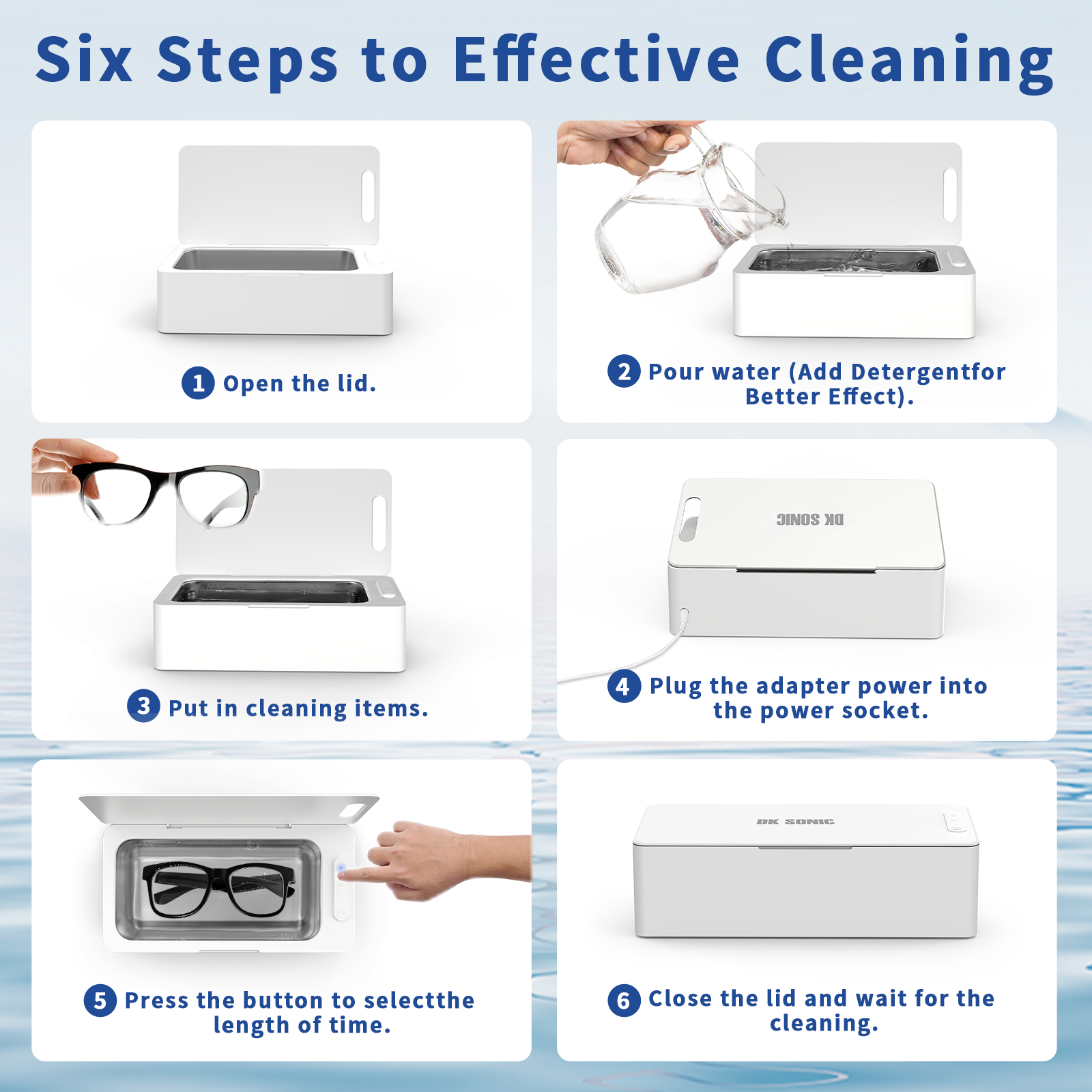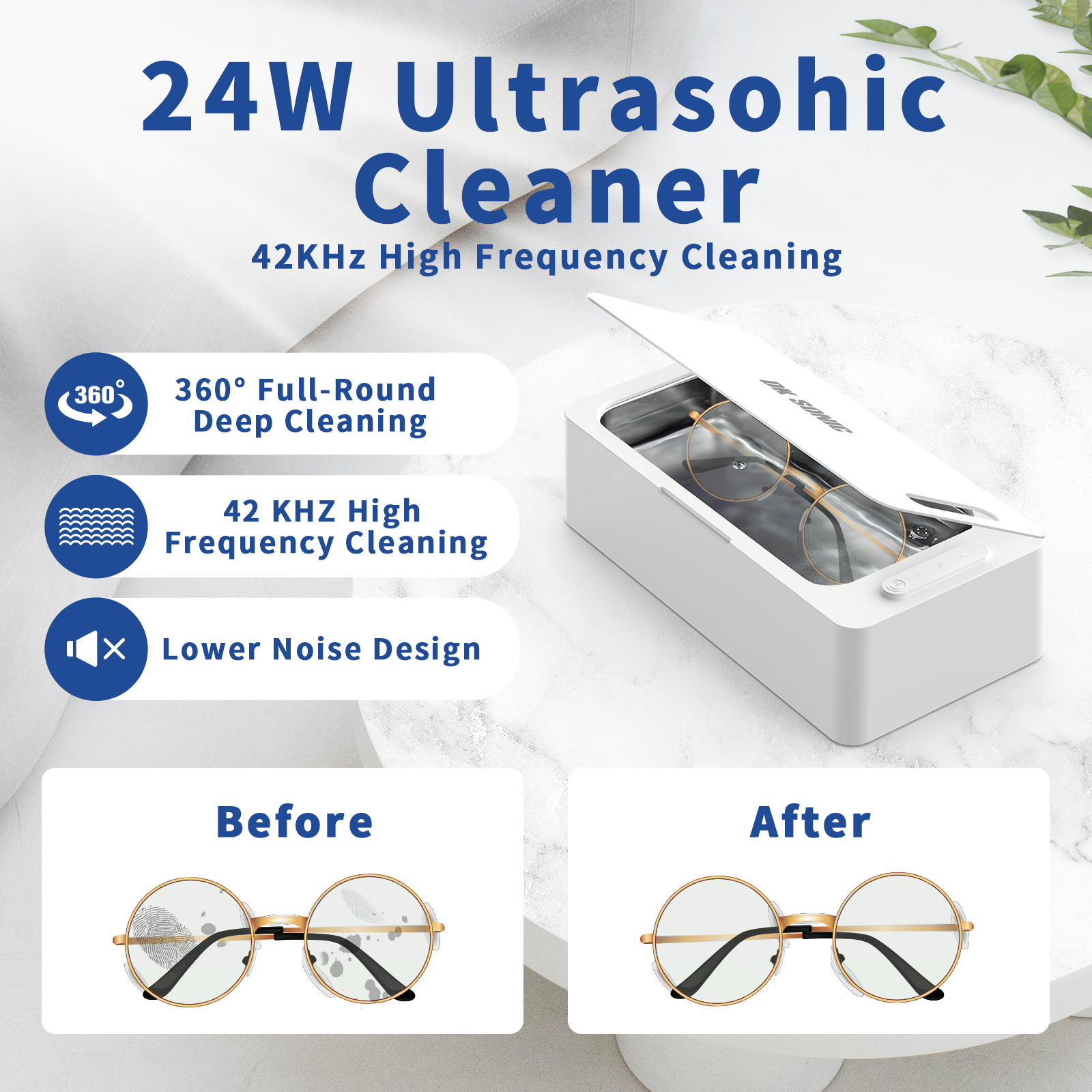 Ultrasonic jewelry cleaner uses 42000Hz high-frequency sound waves to dislodge contaminants from any surface. The ultrasonic cleaner machine can cover 360° to remove stubborn dirt.