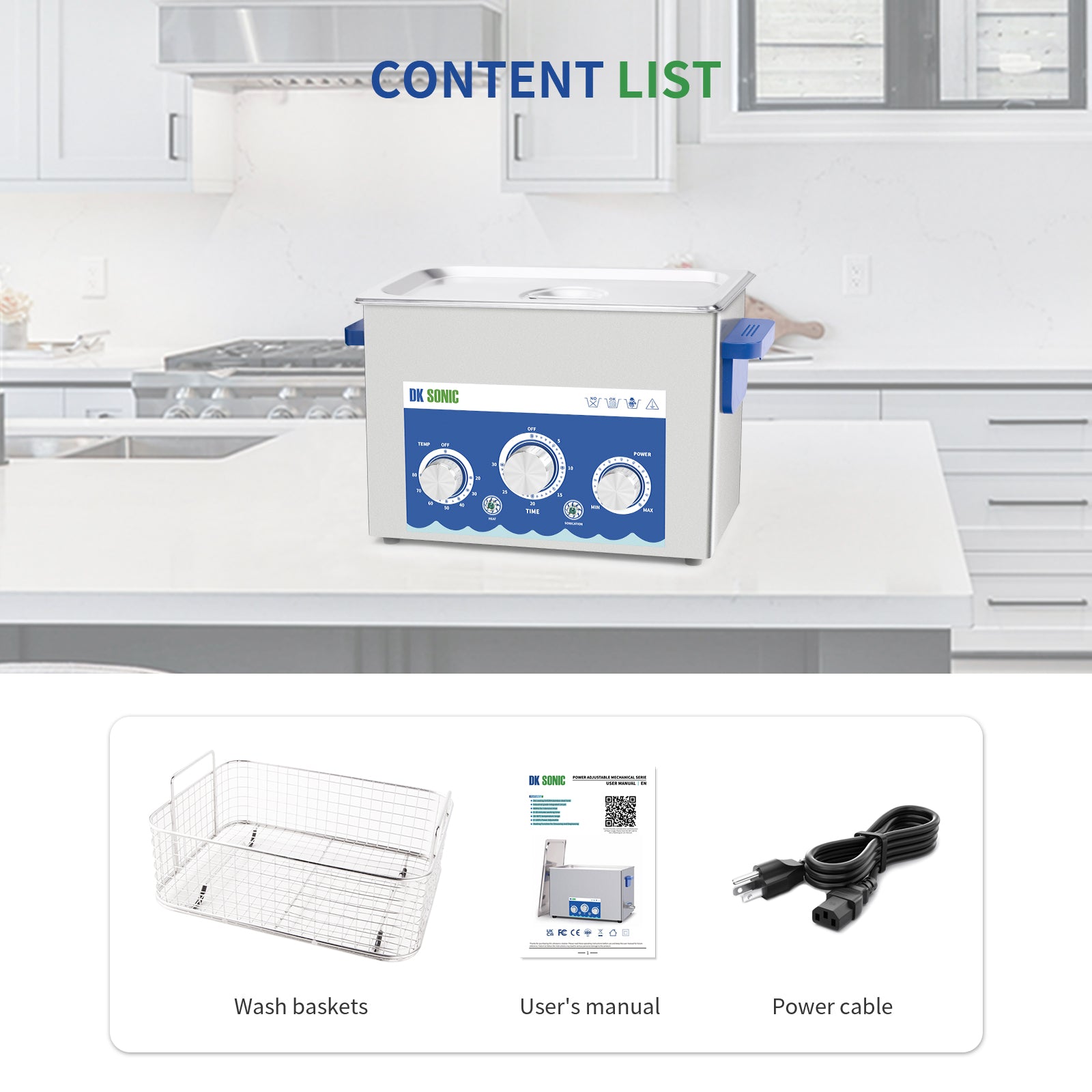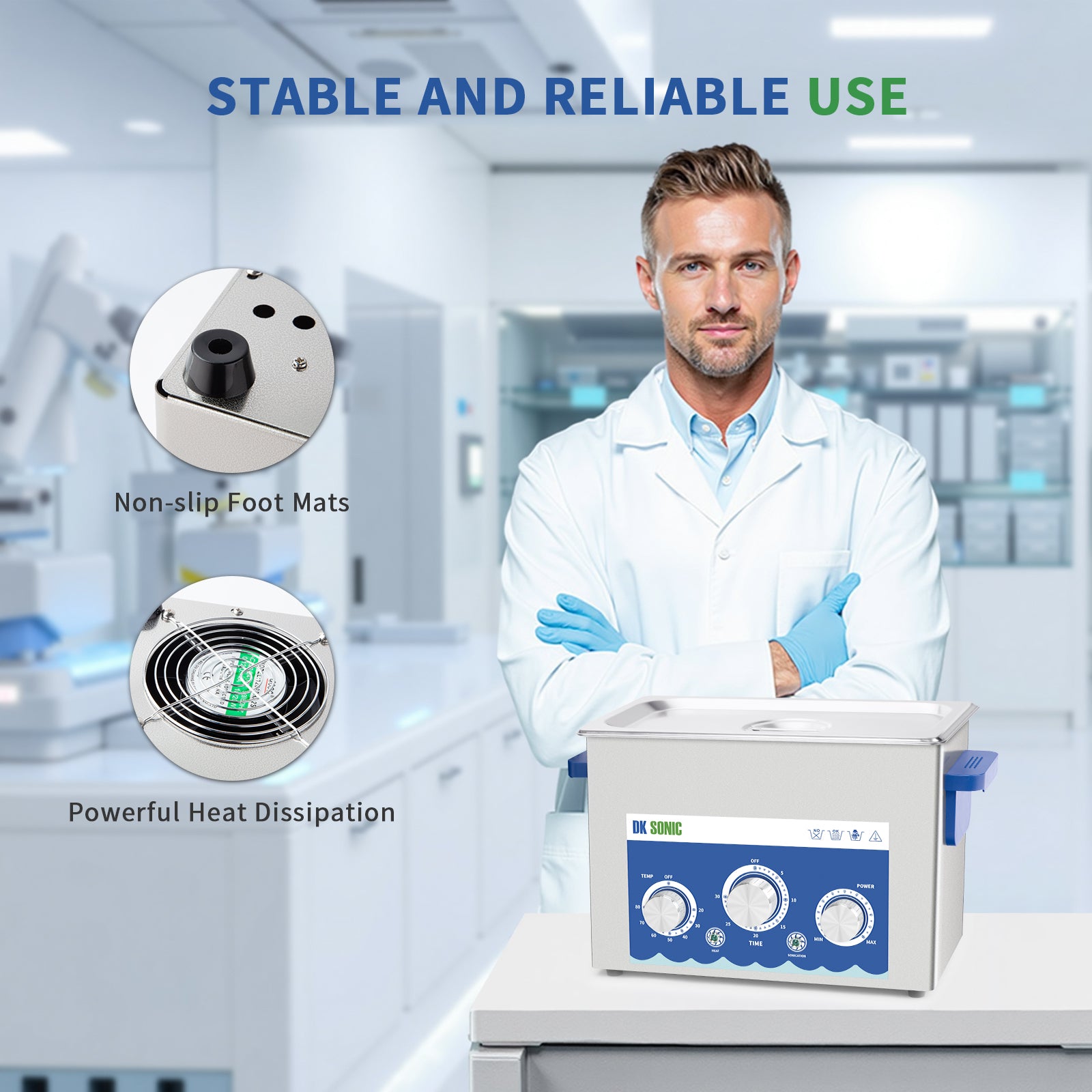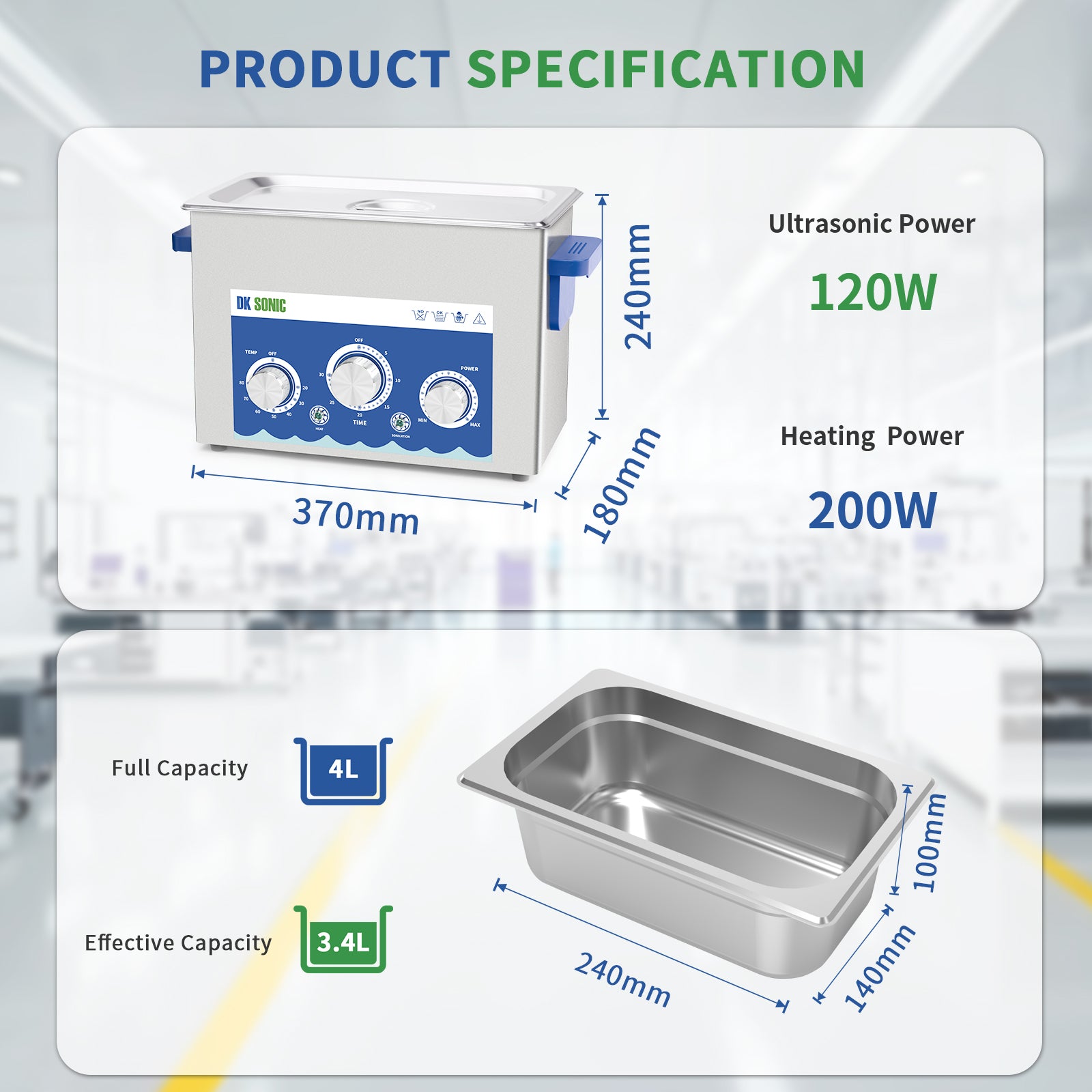 DK SONIC Industrial Ultrasonic Cleaner 4L 120W, Ultrasonic Jewelry Cleaner with Power Adjustable Function, Timer and Heater for Coins, Glasses, Necklaces, Watches Cleaning(Include Basket)
