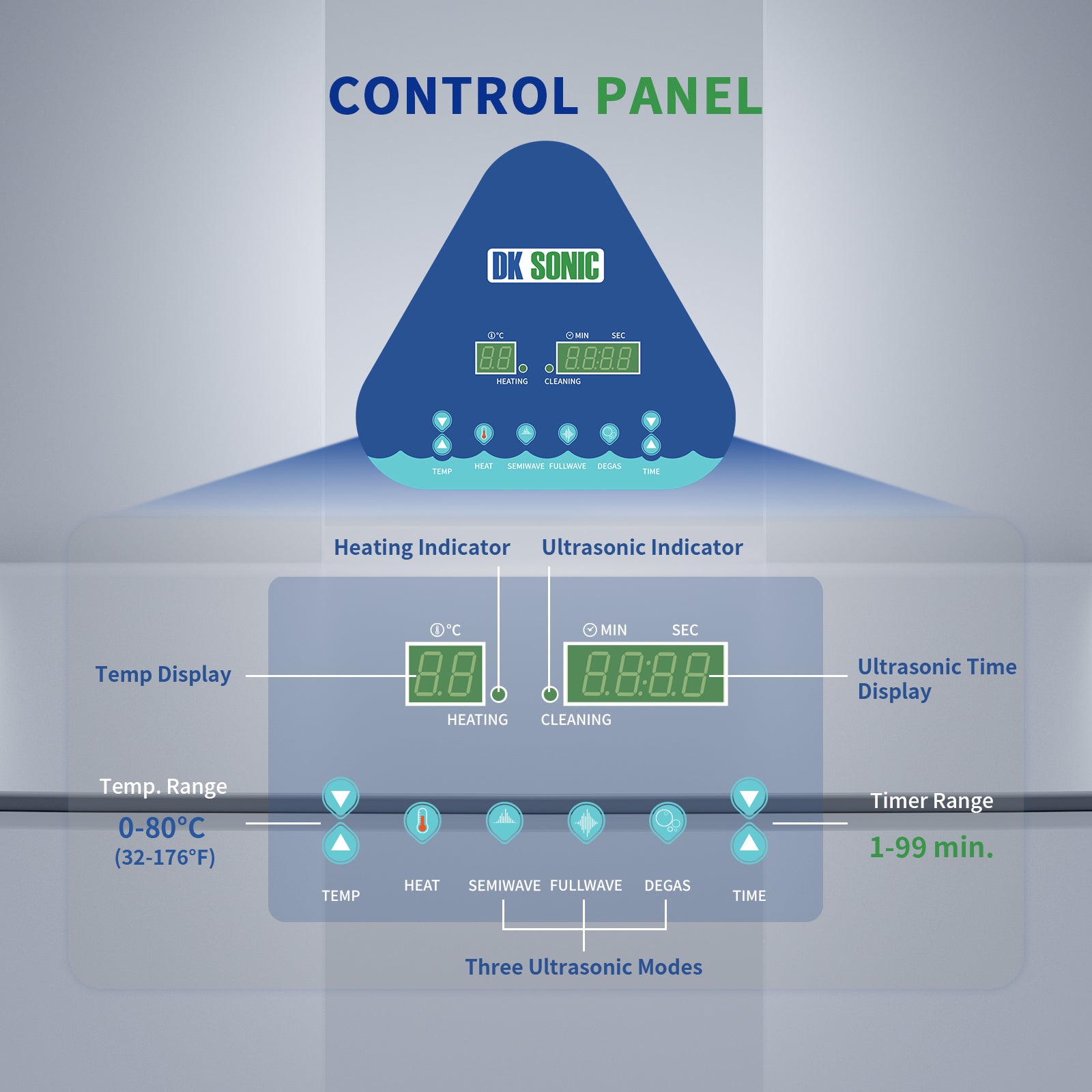 FULLWAVE mode(40KHz) for intensive rinse of blind holes or complicated surfaces; SEMIWAVE mode (semiwave based on 40KHz, i.e. 33KHz) for rough surface cleaning; DEGAS mode for removing ultrasonic fatigue so as to improve cleaning effect